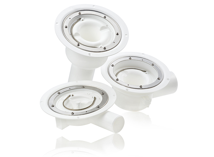 Golvbrunnar med rostfri klämring och lågt säte