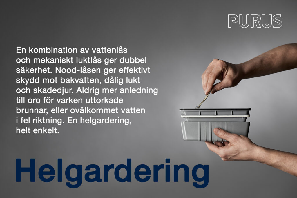 Purus lanserar Trygghetskampanjen steg 2- Helgradering! Nu har vi kommit till steg nr 2 på vår Trygghetskampanj. Denna gång pratar vi om en helgardering gällande vårt NOOD lås. Det är en kombination av vattenlås och mekaniskt lukttlås som ger dubbel säkerhet. Nood-låset ger effektivt skydd mot både bakvatten, dålig lukt och skadedjur. Det finns aldrig mer […]